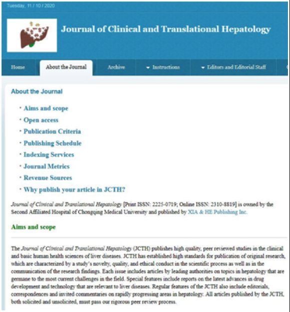 JCTH拥有资深专家团队,由来自24个国家和地区的130多名资深肝病专家和来自44个国家和地区的400多名审稿人组成的编辑团队。 JCTH目前是季刊,每年3月、6月、9月和12月出版。 2019年从投稿到第一次审稿决定平均时间为24天,从接受到网上发表平均时间为23天,2020年由于COVID-19相关文章处理速度快等原因,上述平均时长明显缩短。针对当前 COVID-19 的全球形势,JCTH 成立了 SpecialIssue 以收集和发布与 COVID-19 和肝病相关的研究、评论和病例报告。支持冠状病毒相关研究的快速传播,提供快速的同行评审和发表流程(首次评审最快1天,在线发表最快6天)。所有COVID-19文章都是免费发表的,上线后可以立即发表。医学搜索。