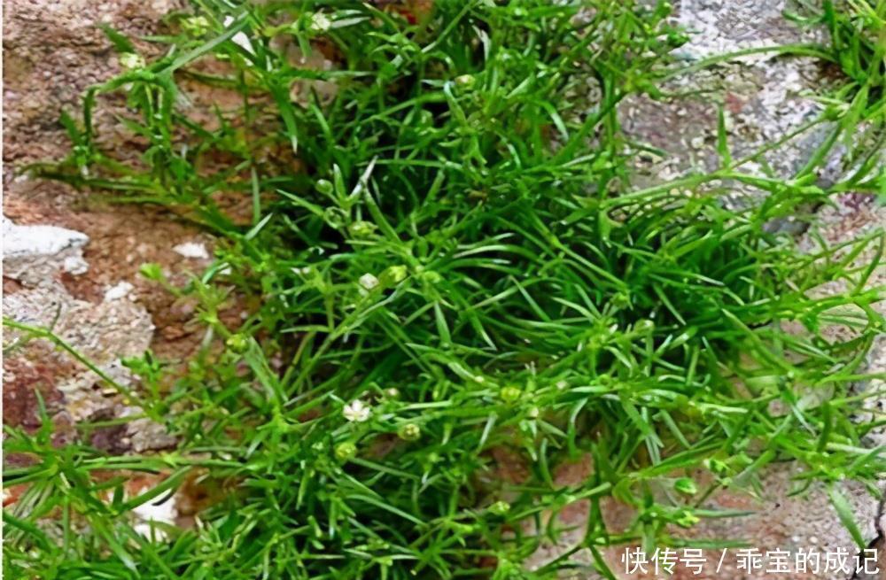 漆姑草,是一年生草本,常生长于中低海拔的河岸沙质地、撂荒地或路旁草地。它的叶小而细长,远远看去如猪毛菜一般,别看它的外表很普通,其实它是一味很好的中药。漆姑草中含挥发油、皂甙和黄酮等化学成分,全草可供药用,有退热解毒之功能。对漆疮有治疗作用,使用时可将鲜叶揉汁涂漆疮上,坚持用上几日即可治愈。